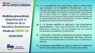 1. A partir de las 6 de la mañana del lunes 16 de marzo y durante un mes quedan suspendidos los vuelos provenientes de los países europeos, China, Corea e Irán y también los vuelos desde República Dominicana hacia esos países.